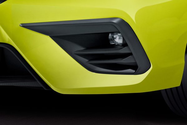 Kesan sporty Honda City Hatchback RS makin terasa dengan pembaruan desain seperti Front Grille terbaru, New Front Under Spoiler dan New Fog Light Garnish. Aksen warna hitam pada atap (two-tone) juga membuat tampilannya semakin garang. Sementara New Under Spoiler with Rear Diffuser yang ditambahkan di bagian belakang, Side Sill Garnish serta desain velg 16 inci baru berwarna Berlina Black pada bagian samping mobil juga menambah kesan sporty serta agresif.
